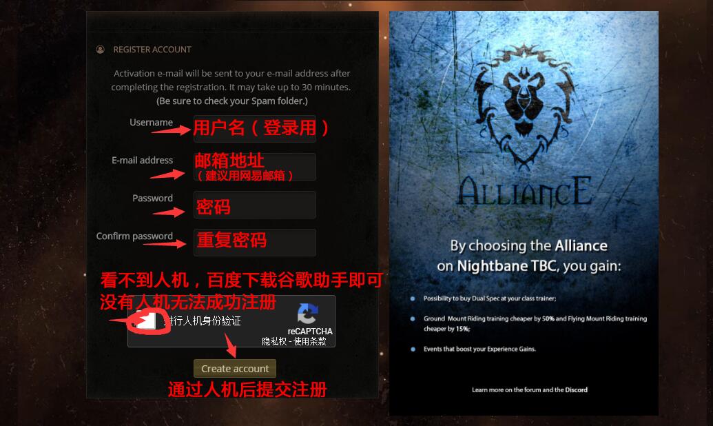先说Sunwell Nightbane服务器注册教程: